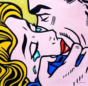 Homage to Roy Lichtenstein - Kiss V m91941 120x120cm beeindruckendes Gemälde