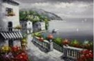 Hotelterrasse mit Meeresblick d88789 60x90cm abstraktes Gemälde handgemalt Dieses Gemälde ist meisterhaft mit Ölfarben handgemalt und auf fester Leinwand verewigt. Achtung, kein Kunstdruck! Alle alten Meister sind handgemalte Reproduktionen! Sie sehen hier das Originalfoto von dem Gemälde. Sie erhalten das Gemälde ohne das KD24 Logo