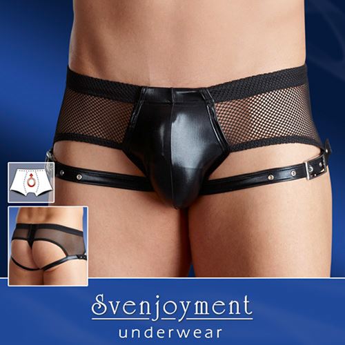 Suchen Sie sexy Unterwäsche für Herren von hervorragender Qualität? Und dann noch zu einem erschwinglichen Preis? Entscheiden Sie sich dann für diese schwarze Boxershort aus Netzmaterial und Wetlook-Material. Dieser ansprechende Jockstrap bietet Ihrem Pen