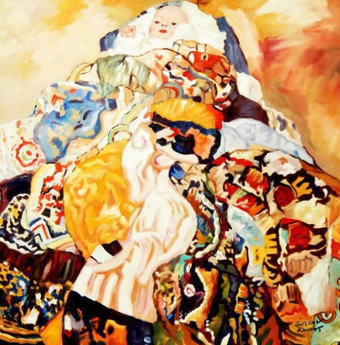 Gustav Klimt - Baby g91814 80x80cm beeindruckendes Ölbild Dieses Gemälde ist meisterhaft mit Ölfarben handgemalt und auf fester Leinwand verewigt. Achtung, kein Kunstdruck! Alle alten Meister sind handgemalte Reproduktionen! Sie sehen hier das Originalfoto von dem Gemälde. Sie erhalten das Gemälde ohne das KD24 Logo