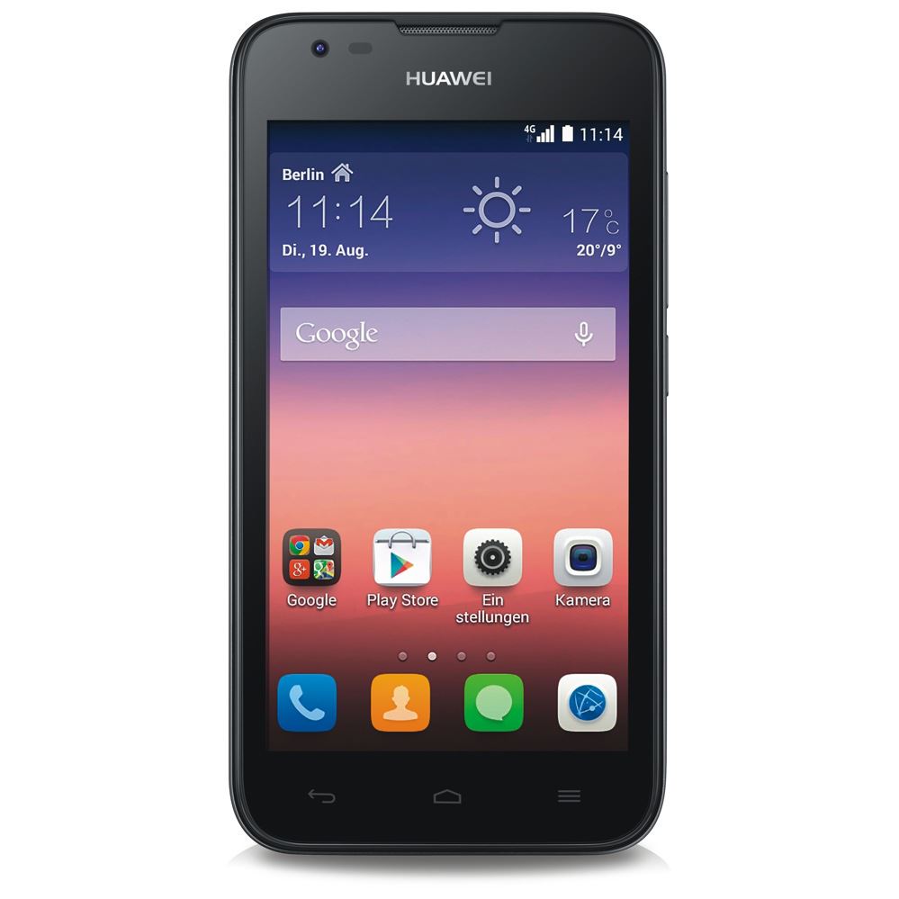 Huawei Ascend Y550 - Farbe: Black - (LTE, Bluetooth 4.0, 5MP Kamera, GPS, Betriebssystem: Android 4.4.3 (KitKat), 1,2 GHz Quad-Core Prozessor, 11,4cm (4,5 Zoll) Touchscreen) - Smartphone