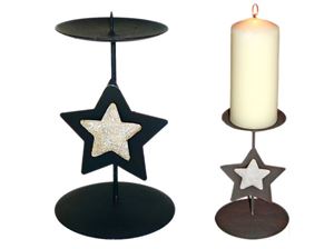 Kerzenständer aus Metall, braun gebürstet,, d 10cm, h=16cm, Sternverzierung in creme