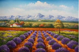 Lavendelfeld in der Toskana d92268 60x90cm fantastisches Ölbild handgemalt Dieses Gemälde ist meisterhaft mit Ölfarben handgemalt und auf fester Leinwand verewigt. Achtung, kein Kunstdruck! Alle alten Meister sind handgemalte Reproduktionen! Sie sehen hier das Originalfoto von dem Gemälde. Sie erhalten das Gemälde ohne das KD24 Logo