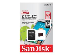MicroSDHC 128GB Sandisk Ultra CL10 UHS-1 80MB/s (533x) RetailKapazität 128GB