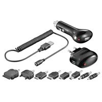 Reiselader, KFZ- und USB-Ladekabel in einem Set!