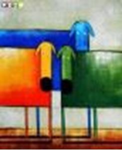Pop Art - Das lustige bunte Hundetrio b88447 40x50cm exquisites Ölbild Dieses Gemälde ist meisterhaft mit Ölfarben handgemalt und auf fester Leinwand verewigt. Achtung, kein Kunstdruck! Alle alten Meister sind handgemalte Reproduktionen! Sie sehen hier das Originalfoto von dem Gemälde. Sie erhalten das Gemälde ohne das KD24 Logo