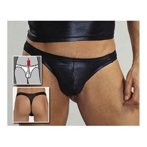 Weichfließender Rio-String im schwarzen Wetlook mit eingearbeitetem »Swell«- Funktionsloch in der Front - betont IHN hervorragend! 100% Polyester.