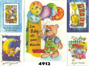 Glückwunsch-Karte zum Baby, 12fach sortiert, einzeln mit Umschlag in Cellophan verpackt