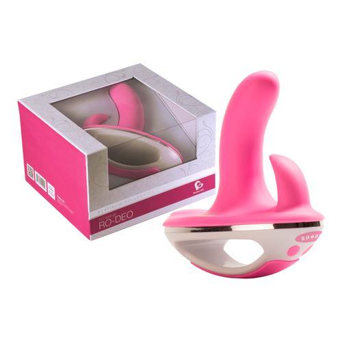 Gebogener Vibrator mit Klitorisreizer im unverwechselbaren Rock-Off-Design, das an einen Pferdesattel erinnert? Mit zwei Antrieben (1 im Klitorisreizarm und 1 im Vibrator) und handlichem Haltegriff. Die 7 Geschwindigkeiten und 7 unterschiedlichen Vibratio
