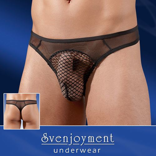 Erregender Herrenstring aus Stretch-Netzmaterial. Der Rio-String ist durch das leicht transparente und elastische Material ein Hingucker. Der komfortable String wird in der Farbe Schwarz geliefert. Merkmale: - Material: 80 % Polyamid, 10 % Polyester,