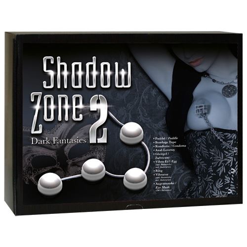 Das Dark-Fantasies-Paket für Fortgeschrittene! Mehr Inhalt, mehr zum lustvollen Probieren: - Leder-Klatsche - Analkugelkette auf Saugfuß - Vibro-Ei - Vibro-Penisring inkl. Batt. - Vibrator inkl. Batterien - Bondage-Tape - Augenmaske - 3 schwarze