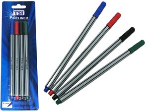 Fineliner 4er Pack in schwarz, blau, rot, grün, je Pack im Blisterpack