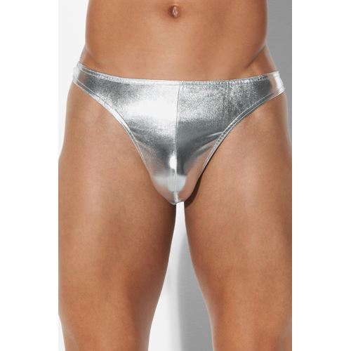 Herrenstring in ansprechender Ausführung aus Stretchmaterial mit komfortabler Passform. Der geräumige Beutel mit gut abschließenden Säumen und die silberfarbene Beschichtung verleihen dem String einen witzigen Show-Effekt.