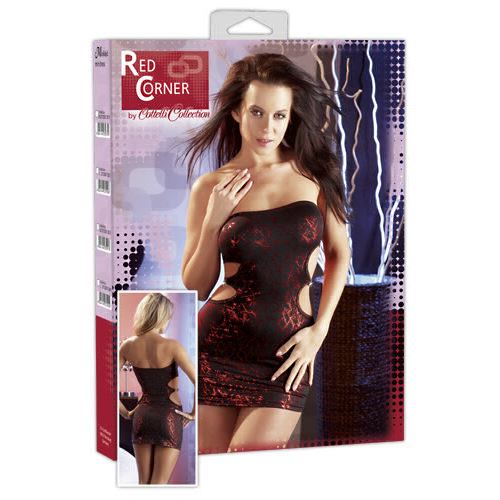 Tubekleid Elastisches, schulterfreies Minikleid mit Strassschmuck verzierten, großen Öffnungen seitlich. Schwarz/Rot. 92% Polyester, 8% Elasthan.
