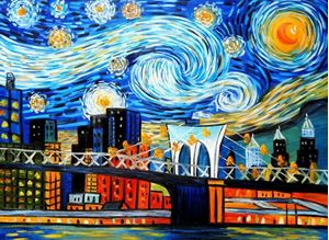 Vincent van Gogh - Homage New Yorker Sternennacht i92391 80x110cm Ölgemälde handgemalt Dieses Gemälde ist meisterhaft mit Ölfarben handgemalt und auf fester Leinwand verewigt. Achtung, kein Kunstdruck! Alle alten Meister sind handgemalte Reproduktionen! Sie sehen hier das Originalfoto von dem Gemälde. Sie erhalten das Gemälde ohne das KD24 Logo
